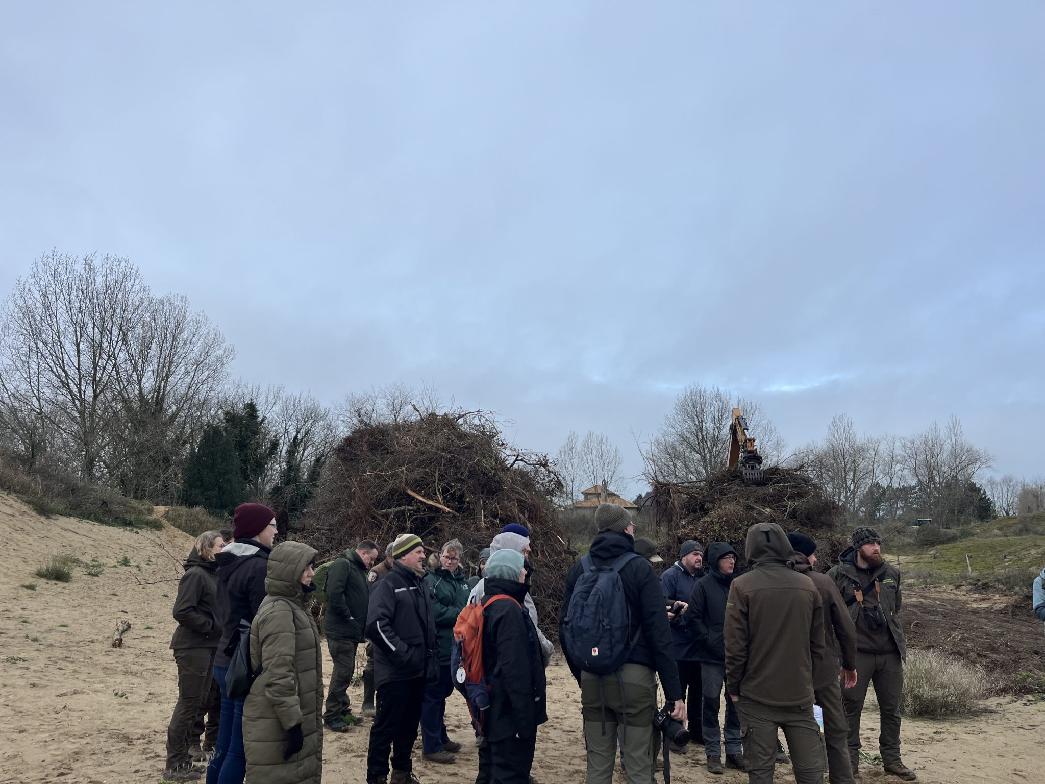 Noslēdzošajā dienā delegācija devās uz LIFE DunIAS projekta pilotteritoriju Koksijdes kāpās, kur tiek ierobežotas invazīvās augu sugas – Krokainā roze (Rosa rugosa), Parstā mahonija (Mahonia aquifolium) u.c. Demonstrēta specializētas tehnikas izmantošana – augsnes sijātājkauss, kas izceļ saknes līdz pat viena metra dziļumam. Šī metode ne vien iznīcina invazīvos augus, bet arī veido atvērtas smiltāju joslas, kas ir labvēlīgas vietējo, barības vielu mazprasīgo sugu atjaunošanai.