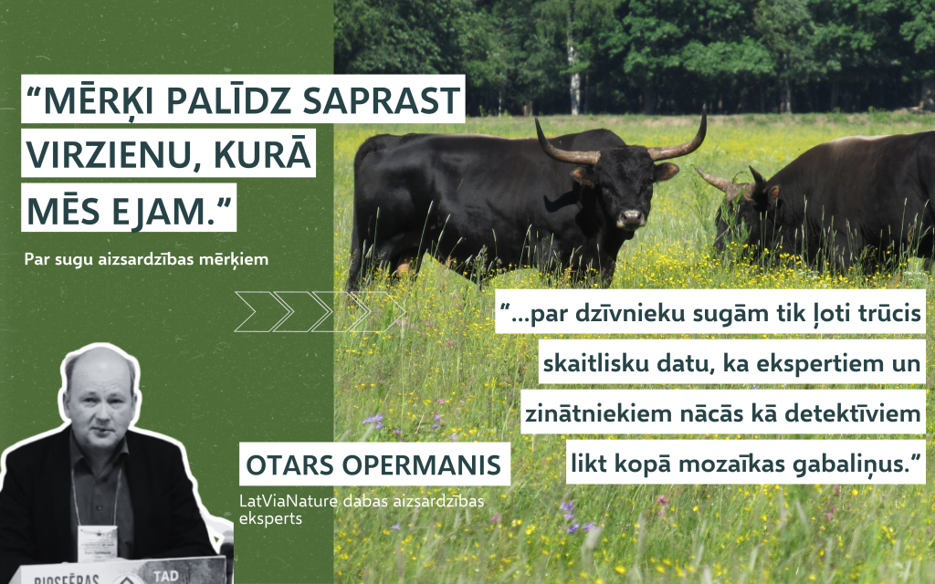 Turpretī visiem biotopiem Latvijā ir veikta dabas skaitīšana. Un es kā ornitologs varu teikt, ka arī par putniem ir daudz labāki dati. Mums ir ļoti liels skaits ornitologu – vesela armija ar labiem amatieriem, kas palīdz vākt datus. Bet paradokss ir tāds, ka mērķu noteikšanu mēs sākām tieši ar tām sugām, par kurām ir vissliktākie dati, ar neputnu sugām. Mēs balansējām uz robežas, kur šos mērķus vispār iespējams noteikt, kā detektīvi meklējām, ko varētu izsecināt un izdarīt, un likām visu kopā kā puzles gabaliņus.